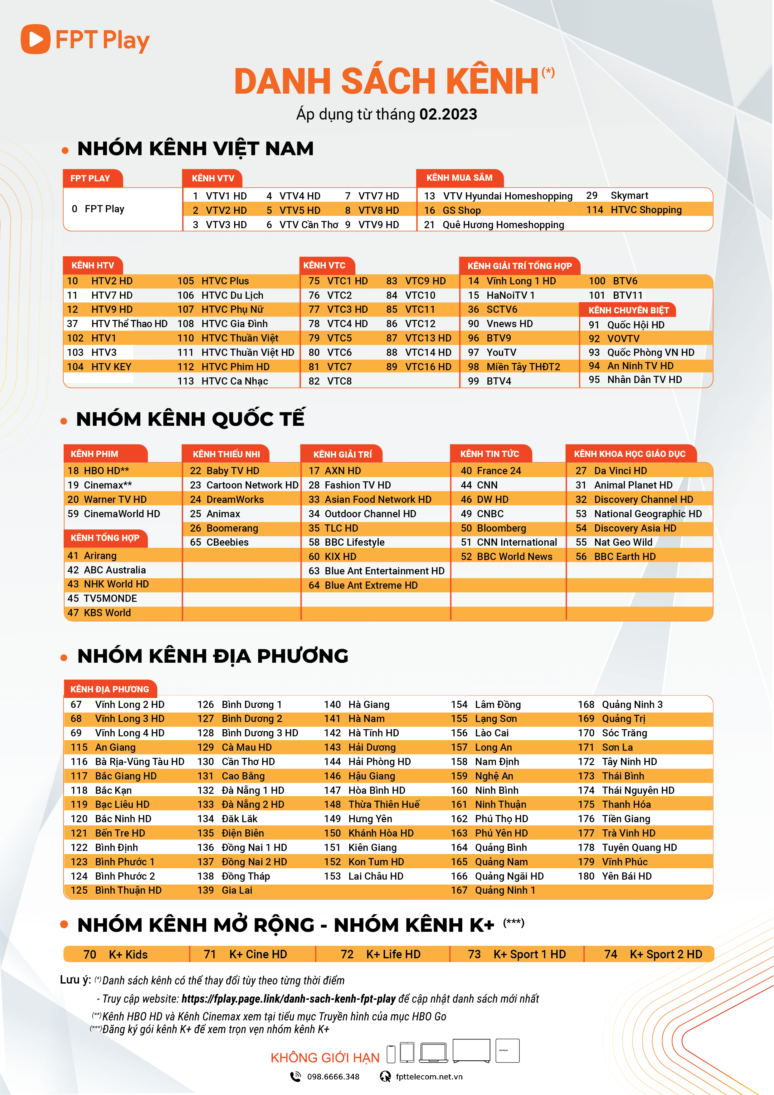 - Gần 200 kênh truyền hình trong nước và quốc tế